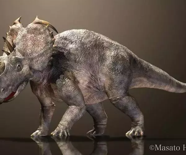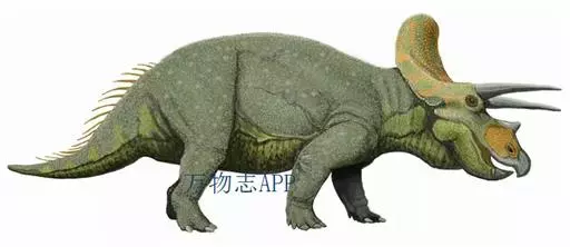 来历:牛角龙拉丁文的意为“巨型爬行动物”,人们曾经发现过一个2.67米的牛角龙头骨。