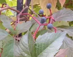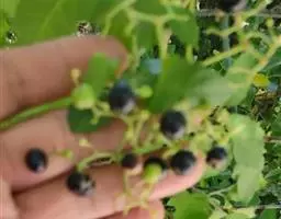 多歧聚伞花序,着生于侧蔓且与叶片对生,花小,呈白绿色,属两性花。花冠为十字形,花盘杯状,萼片4枚,基部合生,花瓣与萼片同数,雄蕊4枚,与花瓣对生,下位子房;果形圆形,果顶有针状突出,果径5~7毫米,未成熟果实为绿色,成熟果实呈紫黑色,果肉为浆果,单核。