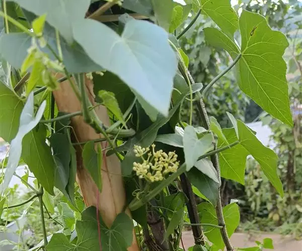 苗期管理:银屏藤苗苗期的生长期间施两次促苗生长的化肥,在栽培的第一年就可以把棚架覆盖完全。锦屏藤在苗期可以在茎节上生长出一些红色的气根,但这些气根要在银屏藤植株生长到棚架上的时候就要摘除掉。