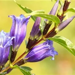 龙胆是龙胆科龙胆属多年生草本植物。龙胆根茎平卧或直立;花枝单生;枝下部叶淡紫红色,…