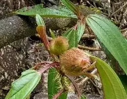 金锦香,别名:杯子草、小背笼、细花包、张天缸、昂天巷子、朝天罐子、细九尺、金香炉、装天甕、马松子、天香炉,拉丁文名:Osbeckia chinensis L.,是野牡丹科、金锦香属直立草本或亚灌木,高20-60厘米;茎四棱形,具紧贴的糙伏毛。叶片坚纸质,线形或线状披针形,极稀卵状披针形,顶端急尖,基部钝或几圆形,全缘,两面被糙伏毛,于背面隆起,细脉不明显;叶柄短或几无,被糙伏毛。头状花序,顶生,蒴果紫红色,卵状球形,4纵裂,宿存萼坛状,外面无毛或具少数刺毛突起。花期7-9月,果期9-11月。图片取自中国植物图库