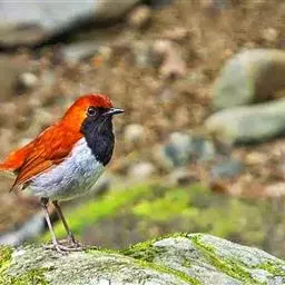 红翅薮鹛是噪眉科、薮鹛属中型鸟类,体长21-24厘米。头顶灰褐色,头侧和颈侧赤红色,上体橄榄褐色,…