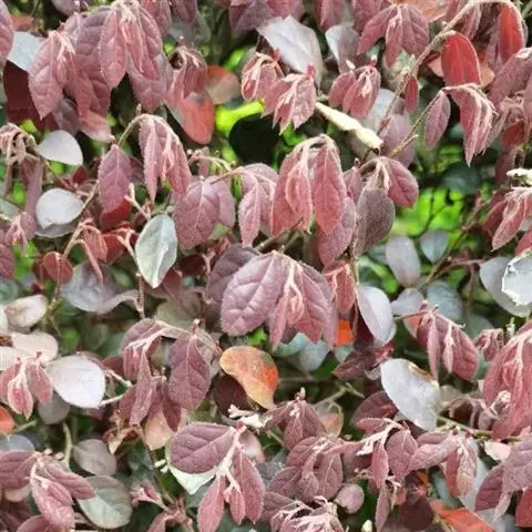 银缕梅 落叶小乔木,嫩枝初时有星状柔毛,以后变秃净,干后暗褐色,无皮孔;芽体裸露,细小,被绒毛。叶薄革质,倒卵形,长4-6.5厘米,宽2-4.5厘米,中部以上最宽,先端钝,基部圆形、截形或微心形,两侧儿对称;上面绿色,干后稍暗晦,略有光泽,除中肋及侧脉略有星毛外,其余部分秃净无毛;下面浅褐色,有星状柔毛;侧脉约4-5对,在上面稍下陷,在下面突起,第1对侧脉无第二次分支侧脉;边缘在靠近先端处有数个波状浅齿,不具齿突,下半部全缘;叶柄长5-7毫米,有星毛;托叶早落。