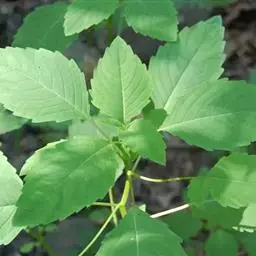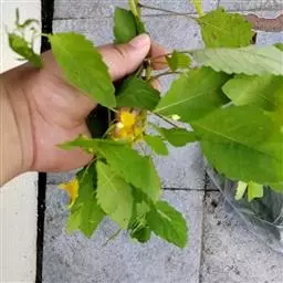 叶互生,近无柄或具短柄,叶片膜质披针形或狭披针形,长8-19厘米,顶端渐尖,基部狭成极短的叶柄,边缘具圆齿状锯齿或细锯齿,齿端具小尖,侧脉6-8对,上面深绿色,下而浅绿色,或干时变紫色,基部具少数具柄膝体;叶柄基部有1对球状的腺体。