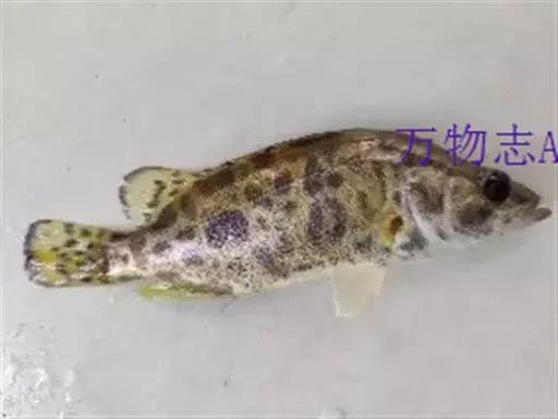 体背侧棕黄色,腹面白色。体具许多不规则褐色斑块和斑点。自吻端经眼至背鳍第至第三鳍棘基底有1条黑褐色斜纹,在第六至第八鳍棘下方有1条垂直宽纹。背侧背鳍基底有4~5个斑块。背鳍、臀鳍和尾鳍均具黑色点斑。胸鳍和腹鳍浅色。