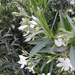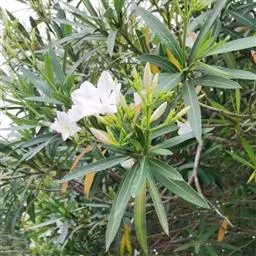 白花夹竹桃是夹竹桃科、夹竹桃属植物夹竹桃的栽培品种。常绿直立大灌木,枝条灰绿色;嫩枝条具稜,被微毛,…