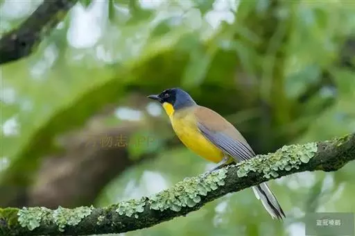 黄喉噪鹛体型略小,顶冠蓝灰色,特征为具黑色的眼罩和鲜黄色的喉。上体褐色,尾端黑色而具白色边缘,…