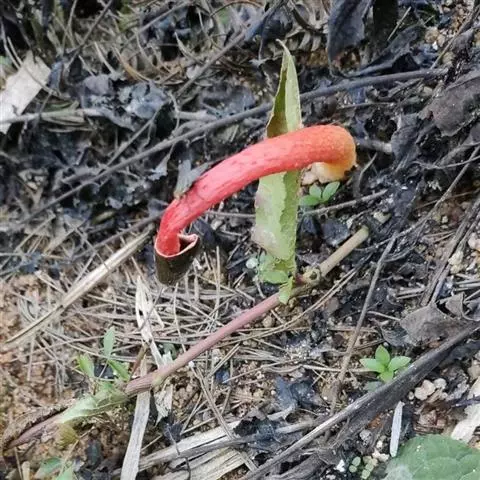 红鬼笔 生态习性:夏秋季在菜园、屋旁、路边、竹林等地上成群生长。多生长在腐殖质多的地方。