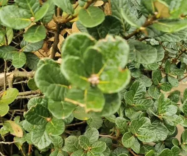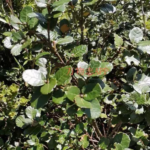 常绿灌木或小乔木,高达15米。小枝密被棕色绒毛。叶片长圆形,长椭圆形或倒卵形,长3-9厘米,宽2-5厘米,顶端圆钝,基部圆形,全缘或有刺锯齿,叶面沿中脉被毛,叶背被棕色海绵状腺毛及白色星状毛,侧脉每边7-12条;叶柄长2-7毫米,被棕色绒毛。雄花序长4-6厘米,花序轴及花被被绒毛;果序长5-6厘米。壳斗帽斗状,直径2-3厘米,高0.6-1厘米,壁厚约2毫米,顶端边缘扩展或波浪状皱褶,内壁被灰黄色厚绒毛;小苞片披针形,长约2毫米,中下部被灰棕色绒毛,顶端钝头,红棕色,无毛。坚果卵形或近球形,高、径约1.5-1.8厘米,无毛,顶端圆,果脐微突起。花期4-5月,果期10-11月。