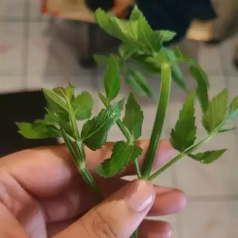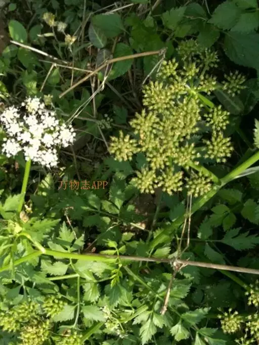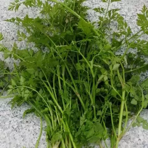 水芹(Oenanthe javanica (Bl.) DC.)是伞形科,水芹属多年生草本植物,茎直立或基部匍匐。基生叶有柄,基部有叶鞘;叶片轮廓三角形。复伞形花序顶生;无总苞;伞辐不等长,直立和展开;萼齿线状披针形,花瓣白色,倒卵形,有一长而内折的小舌片;花柱基圆锥形,直立或两侧分开。果实近于四角状椭圆形或筒状长圆形,侧棱较背棱和中棱隆起,木栓质。花期6-7月,果期8-9月。