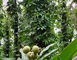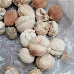 蒴果木质,球形或卵形,室背开裂,顶端冠以宿存的花萼;种子多数,黑色,具白色撕裂状假种皮。