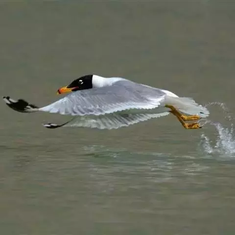 渔鸥体长68厘米,是形体较大的背灰色鸥。头黑而嘴近黄,上下眼睑白色,看似巨型的红嘴鸥,…