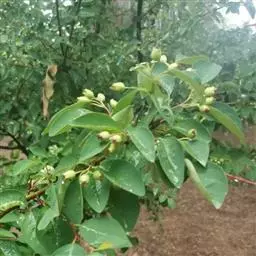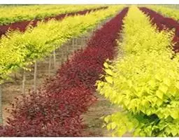自然杯状形树冠的培育:一年生嫁接苗移植后,留主干1 米髙,剪去顶梢,剪口芽留壮芽。在1米以下的部位不断抽出新 枝,可供选择留作主枝。一般在距地面30-40厘米处的新枝留作为第一主枝;在第一主枝上面20-30厘米处,选留新枝作为第二主枝;在1米的地方,即剪口芽抽出的新枝为第三主枝。三大主枝要均匀分布在主干周围,最好不要轮生。夏季修剪时,将主枝上的 直立枝、主干上的萌蘖枝和砧木上萌发的砧芽除去,以免影响主枝的生长和早日形成。第二年冬剪时,对各主枝进行短截,剪口芽留壮芽,以培养主枝延长枝。另外在各主枝上选留适合的侧枝。需要注意的是,同级侧枝留在同方向,以免侧枝互相交叉,影响树形和通风透光。