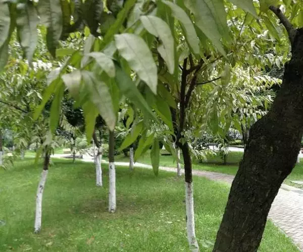 涂白防虫:成虫产卵前,在主干和主枝上刷石灰硫磺混合剂并加入适量的触杀性杀虫剂,硫磺、生石灰和水的比例为1:10:40。(3)虫道注药。发现枝干上的排粪孔后,将粪便木屑清理干净,塞入56%磷化铝片剂1/4片或注入80%敌敌畏乳油10-20倍,用黄泥将所有排粪孔封闭,熏蒸杀虫效果很好。