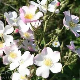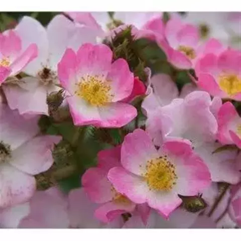 白蔷薇:直立灌木,高约2米;小枝有不等钩状皮刺,有时混有刺毛。小叶通常5,稀7,宽椭圆形或卵形,…