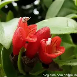 口红花 G.Don)是苦苣苔科,芒毛苣苔属常附生小灌木,茎长可达100厘米,圆柱形,叶对生,叶片革质,…