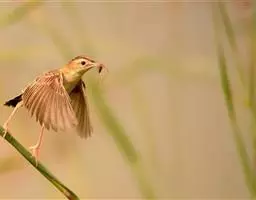 棕扇尾莺是扇尾莺科扇尾莺属的小型鸟类,体长9~11厘米。上体栗棕色具粗著的黑褐色羽干纹和棕白色眉纹,…