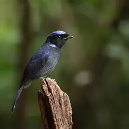 小仙鹟:体长11-13厘米,是一种深色鹟。雄鸟深蓝,脸侧及喉黑,臀白,前额、颈侧及腰为闪辉蓝色。…