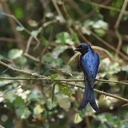 发冠卷尾是中型鸟类,体长28-35厘米。通体绒黑色缀蓝绿色金属光泽,额部具发丝状羽冠,…