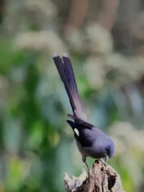 白眉扇尾鹟:体长17厘米,是一种中等体型的灰色扇尾鹟。色彩独特。宽宽的眉纹及前额白色,尾有白色宽边…