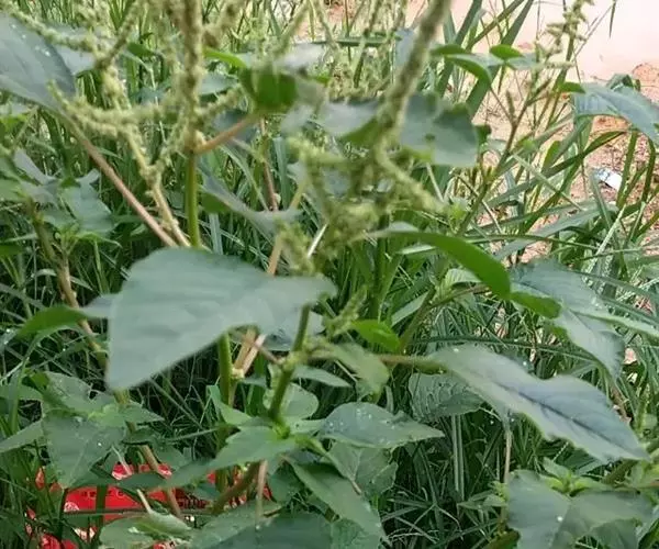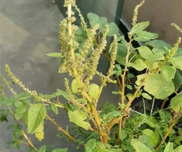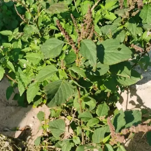 反枝苋是苋科苋属的一年生草本植物。株高达1米;茎密被柔毛;叶菱状卵形或椭圆状卵形,先端锐尖或尖凹,…