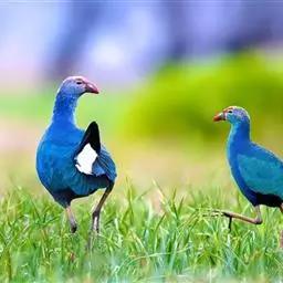 紫青水鸡 一般是独栖的,每到繁殖季节,雌雄才会成双成对共同建立领域,由雄鸟造巢。雌鸟在巢造好后便可产下5-10枚卵,夫妻双方轮流孵化3周后,雏鸡就会出壳,再过两个月雏鸟就会飞翔。