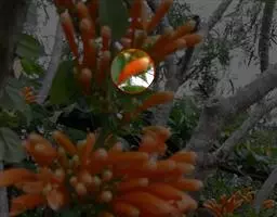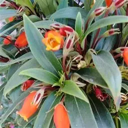 叶对生,长卵形,全缘,叶面浓绿色,叶背浅绿色。花序多腋生或顶生,花萼筒状,黑紫色披绒毛,花冠筒状,红色至红橙色,从花萼中伸出。花期主要在夏季。