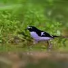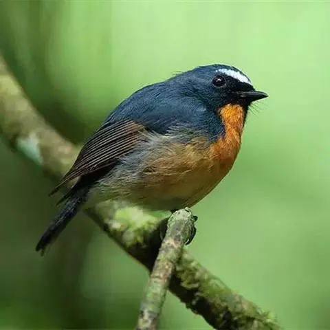 山蓝仙鹟:小型鸟类,体长13-15厘米。雄鸟额基和眼先黑色,颏橙棕色,仅颏尖为蓝黑色,…