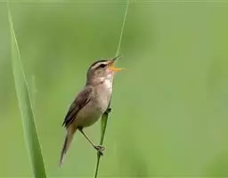 日本歌鸲:体型小似麻雀,但羽毛颜色较为美丽。嘴细长,嘴须不发达;翅短圆,上体草黄褐;雄鸟喉部橙棕色,…