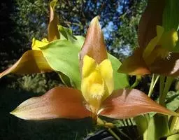 大花杓兰因其形状酷似一个口小肚大的囊袋,又名“大口袋兰”。花体呈紫红色,花朵直径5厘米至6厘米,…