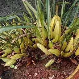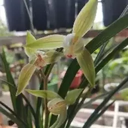 建兰四大铭品之一。夏皇叶形为长鱼肚型,叶尾稍钝,叶面波浪纹稍重!叶片厚实!花为黄白色,稍偏黄,两捧软兜,龙吞舌,外瓣稍短,瓣尾稍尖!夏皇开品比较稳定,惜花型稍小了一点!夏皇据说出自四川郫县,初名“夏荷梅”意为花荷梅之型!!