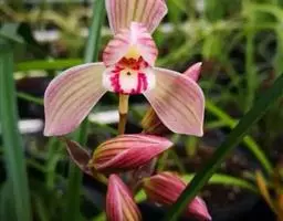 小叶兜兰兰科,兜兰属地生或半附生植物。叶基生;数枚至多枚,叶片带形、革质。花葶从叶丛中长出,花苞片…