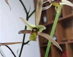 喉红石斛:附生。茎丛生,直立,粗短,近棒状纺锤体。叶2-4枚,生于茎顶。总状花序顶生,花序轴长5-…