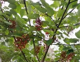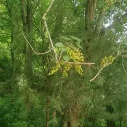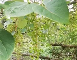 山拐枣,拉丁文名:Idesia sinensis Oliv.,大风子科、山拐枣属落叶乔木,树皮灰褐色,浅裂;小枝圆柱形,性脆,灰白色,幼时有短柔毛,老时无毛。叶厚纸质,卵形至卵状披针形,初时有疏长毛,果熟后近无毛。花单性,雌雄同序,蒴果长圆形,外果皮革质,有灰色毡毛,内果皮木质;种子多数,周围有翅,扁平。生于海拔400-1500米的山坡、山脚常绿、落叶阔叶混交林和落叶阔叶林中。木材结构细密,材质优良,供家具、器具等用;花多而芳香,为蜜源植物。