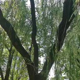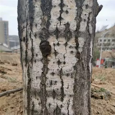 落叶乔木,高7-15米;树皮灰褐色,浅裂;小枝圆柱形,性脆,灰白色,幼时有短柔毛,老时无毛。