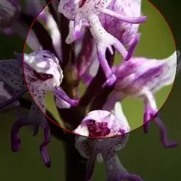 花瓣匙形,比萼片小,先端钝;前唇白色,近三角形,长约5毫米,宽8-10毫米,先端钝而其背面具1个乳头状突起,边缘撕裂状或啮蚀状,上面光滑无毛,而中央具1个增厚的垫状物;后唇兜状,两侧压扁,末端外侧黄色带紫红色斑点,具3条脊,上端具紫红色而几乎平截的口缘;口缘与前唇几乎在同一水平面上或在前端高高抬起与前唇上面的垫状物连接。花期通常10月。