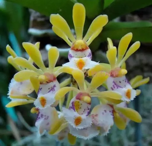 花序近伞形,1-4个,出自茎的基部侧旁,常具5-8朵花;花序柄粗壮,劲直,长1-2厘米,具2枚杯状鞘;花苞片宽卵形,长约3毫米,先端钝;花梗和子房长1-1.5厘米;花芳香,萼片和花瓣黄色带紫红色斑点;萼片几等大,近椭圆形,长6-12毫米,宽3.5-6毫米,先端钝,基部收狭。