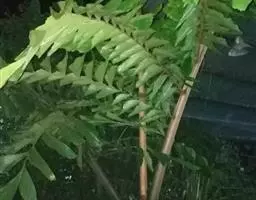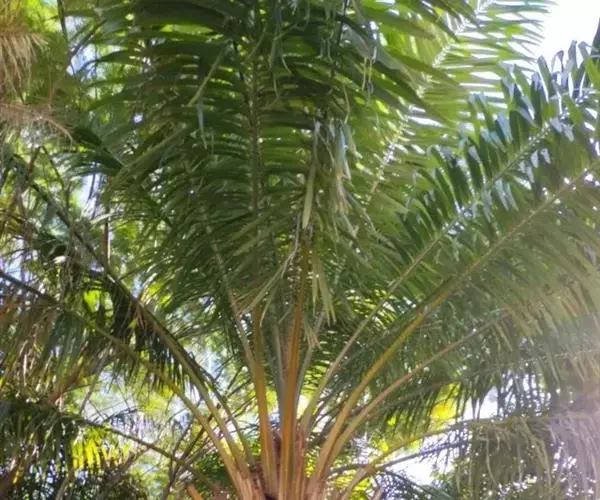 直立乔木状,高达10米或更高,直径达50厘米,叶多,羽状全裂,簇生于茎顶,长3-4.5米,羽片外向折叠,线状披针形,长70-80厘米,宽2-4厘米,下部的退化成针刺状;叶柄宽。