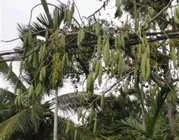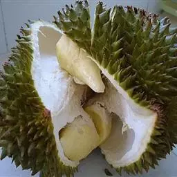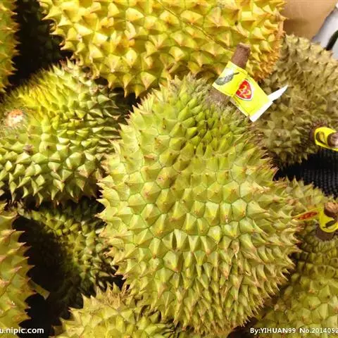 榴梿,是一种锦葵目、木棉科巨型的热带常绿乔木,叶片长圆,顶端较尖,聚伞花序,花色淡黄,果实足球大小…