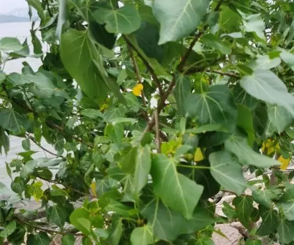 桐棉(学名:Thespesia populnea)又名恒春黄槿、杨叶肖槿,锦葵科桐棉属常绿乔木,高约6米;小枝具褐色盾形细鳞秕。叶卵状心形,长7-18厘米,宽4.5-11厘米,先端长尾状,基部心形,全缘,上面无毛,下面被稀疏鳞秕;叶柄长4-10厘米,具鳞秕;托叶线状披针形,长约7毫米。花单生于叶腋间;花梗长2.5-6厘米,密被鳞秕;小苞片3-4,线状披针形,被鳞秕,长8-10毫米,常早落;花期近全年。产台湾、广东(包括海南岛)。常生于海边和海岸向阳处。