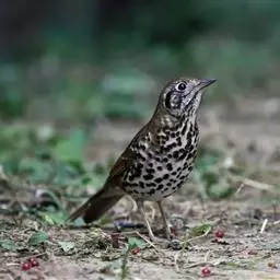 叫声:受惊时的叫声为chook, chook, chook的咯咯声似乌鸫,于巢区发出愤怒的churr声。叫声通常为一个优雅的单音接以清晰的四声下降音。圆润饱满似笛音,又似乌鸫。