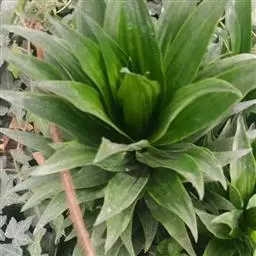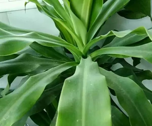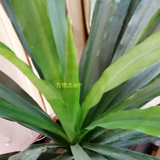 叶片宽大。叶簇生于茎顶,长椭圆状披针形,无柄;叶长40-90厘米、宽6-10厘米,弯曲成弓形,叶缘呈波状起伏,叶尖稍钝;鲜绿色,有光泽。穗状花序,花小,黄绿色,芳香。