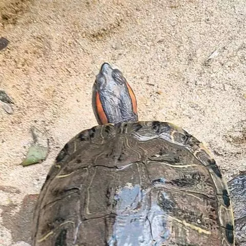 巴西彩龟(学名:Trachemys scripta)是龟科、彩龟属动物。在人工养殖条件下,1年体重可达100克。体形适中,头较小,吻钝,头、颈处具黄绿相问的纵条纹,眼后有一对红色斑块。背甲扁平,每块盾片上具有圆环状绿纹,后缘不呈锯齿状。腹甲淡黄色,具有黑色圆环纹,似铜钱,背甲、腹甲间借骨缝相连。四肢淡绿色,有灰褐色纵条纹,趾、指间具丰富的蹼。该龟色彩斑斓,背甲上呈红、黄、白、棕、绿、灰、紫等7种颜色规则的几何图案;腹板有黄、白、黑相间的甲骨文字式花纹,且每龟不尽相同。
