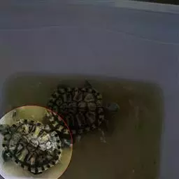 刚出壳的仔龟靠自身的卵黄囊提供营养,不需喂食。1-2天后投喂熟蛋黄、红虫、丝蚯蚓等。1周后可喂剪碎的小鱼虾,螺蚌肉、蚯蚓、动物内脏等。饲料必须新鲜、精细、柔软、适口性好、易消化,不投腐败变质的食物及脂肪含量高的蚕蛹、内脏等不易消化的食物。日喂2次,日投喂量为龟总体重的5-10%。投饵要定点、定时、定量,以2小时内吃完为好。为保证龟的正常摄食生长,水温要保持在26-30℃。