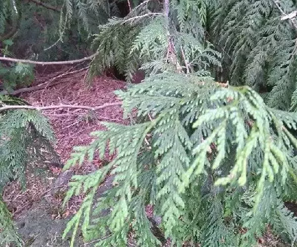 乔木,在原产地高达50米;树皮红褐色,裂成薄皮脱落;树冠尖塔形;生鳞叶小枝条扁平,排成一平面。鳞叶先端锐尖,侧面之叶较中间之叶稍长,小枝上面中央之叶深绿色,下面之叶有明显的白粉。球果圆球形,径约6毫米,熟时暗褐色;种鳞5-6对,顶部中央稍凹,有凸起的小尖头,发育的种鳞各有1~2粒种子;种子三角状卵圆形,有棱脊,两侧有宽翅,径约2~3毫米。