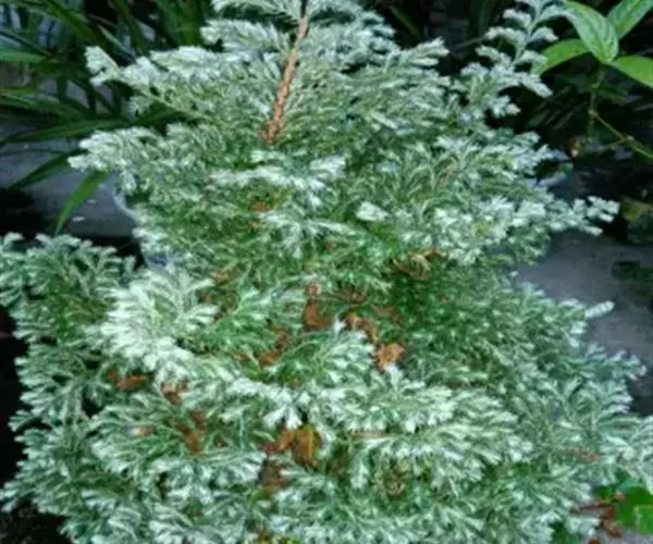 灌木或小乔木,树冠卵状球形或近球形,通常宽大于高;枝叶浓密,绿色或淡绿色;小枝细长下垂;鳞叶先端锐尖。原产日本。