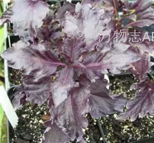 紫罗勒,Ocimum basilicum ‘Purple Ruffles’,英语名字 :Basil,唇形科罗勒属植物。叶色独特,适于庭植、花坛构成色彩变化或盆栽。叶片可当蔬菜食用,也可冲泡花草茶,浸入醋中可得色泽美丽的罗勒醋。