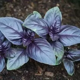 唇形科罗勒属,一年生草本,紫罗勒是罗勒的栽培变种,株高20~40cm,茎钝方形,全株暗紫红色。叶对生,卵形或长椭圆形,叶面微皱,叶缘有不规则锯齿状浅裂。花期在夏季,轮伞花序6,花排列成假总状花序,小花白色。