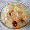暖胃益气牛肉羹 材料:糯米180克,7杯(约1.4千克)水,50克牛肉,10g香菇,葱花、酱油、蒜泥、黑胡椒、芝麻油、盐。