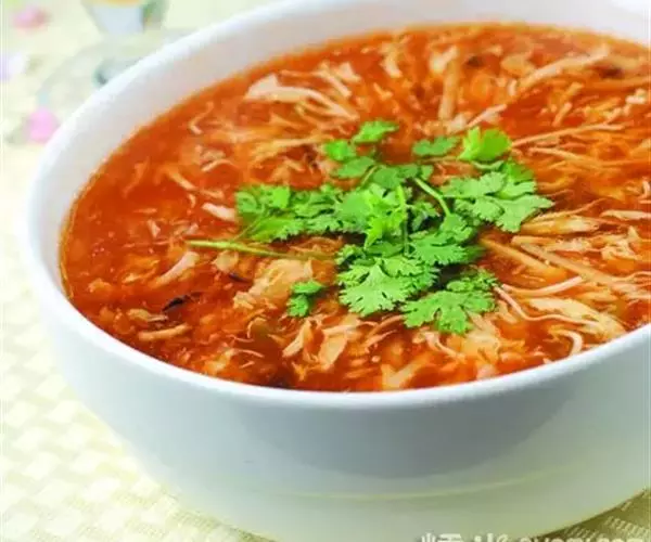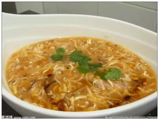 黑胡椒粉半匙,热高汤五杯,香菜少许;水一大匙,精盐两匙,味精半匙,湿淀粉一大匙。